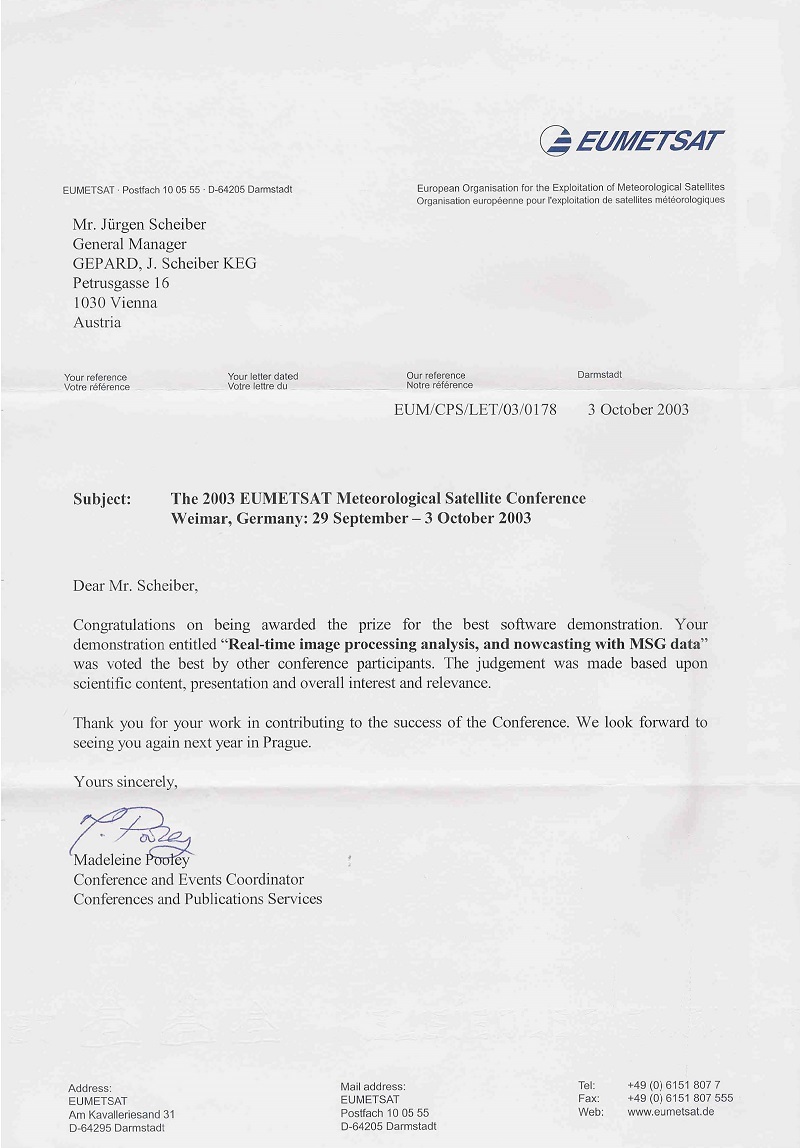 Award at the 2003 Meteosat User Conference